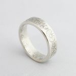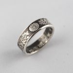 銀貨の中央に穴を開けて絞り加工を行い、平面であるコインを立体的なリングの形状に仕上げています。
